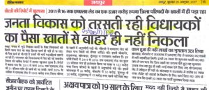 सियासत जनता विकास को तरसती रही विधायकों का पैसा खातो से बाहर ही नहीं निकला June 9, 2018 Gyanesh Kumar (दिनांक 25/10/2017 को दैनिक भास्कर राजस्थान पत्रिका में प्रकाशित खबर)