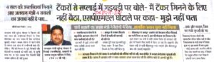 सियासत टेंकरों से सप्लाई में गड़बड़ी पर बोले-मैं टेंकर गिनने नहीं बैठा,एसपीएमएलघोटाले पर बोले,मुझे नहीं पता June 9, 2018 Gyanesh Kumar (दिनांक 06/12/2017 को दैनिक भास्कर में प्रकाशित खबर)