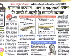 सियासत तुगलकी फरमान…भाजपा कार्यकर्ता ध्यान दे!जल्दी से अपनों के तबादले करवाये June 9, 2018 Gyanesh Kumar (दिनांक 18/02/2018 को राजस्थान पत्रिका में प्रकाशित खबर)