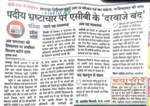पदीय भ्रष्टाचार पर एसीबी के’दरवाजे बंद’
