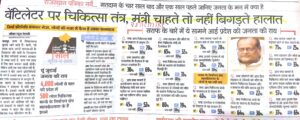 सियासत वेंटिलेटर पर चिकित्सा तंत्र,मंत्री चाहते तो नहीं बिगड़ते हालात June 9, 2018 Gyanesh Kumar (दिनांक 25/12/2017 को राजस्थान पत्रिका में प्रकाशित खबर)