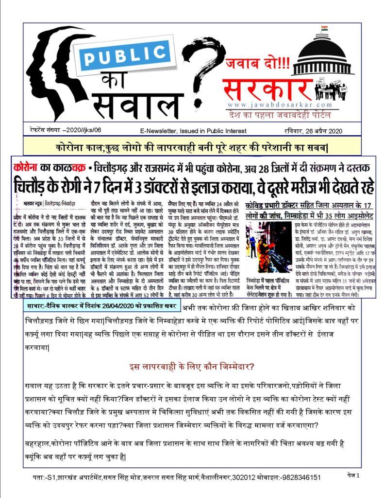 जनता का सवाल कोरोना काल;कुछ लोगो की लापरवाही बनी पूरे शहर की परेशानी का सबब| April 26, 2020 Gyanesh Kumar